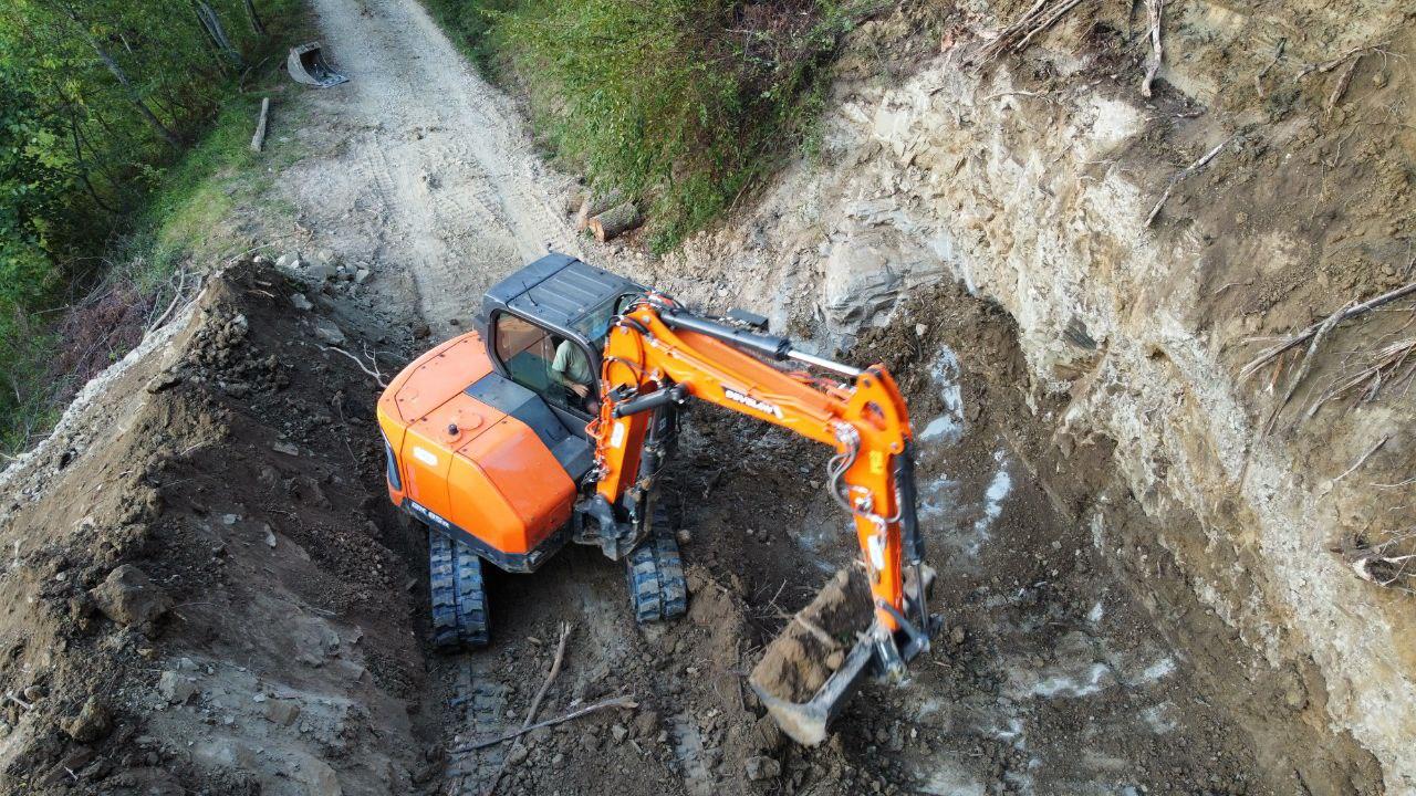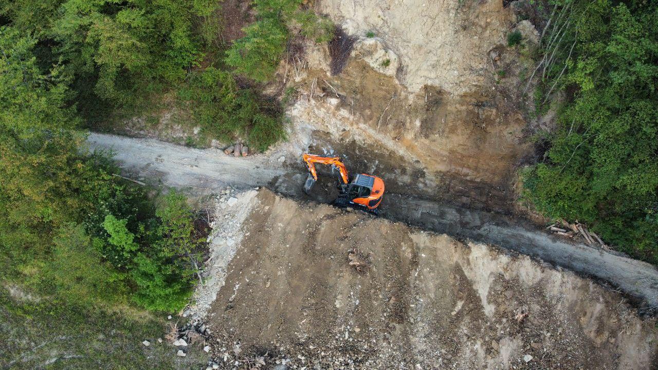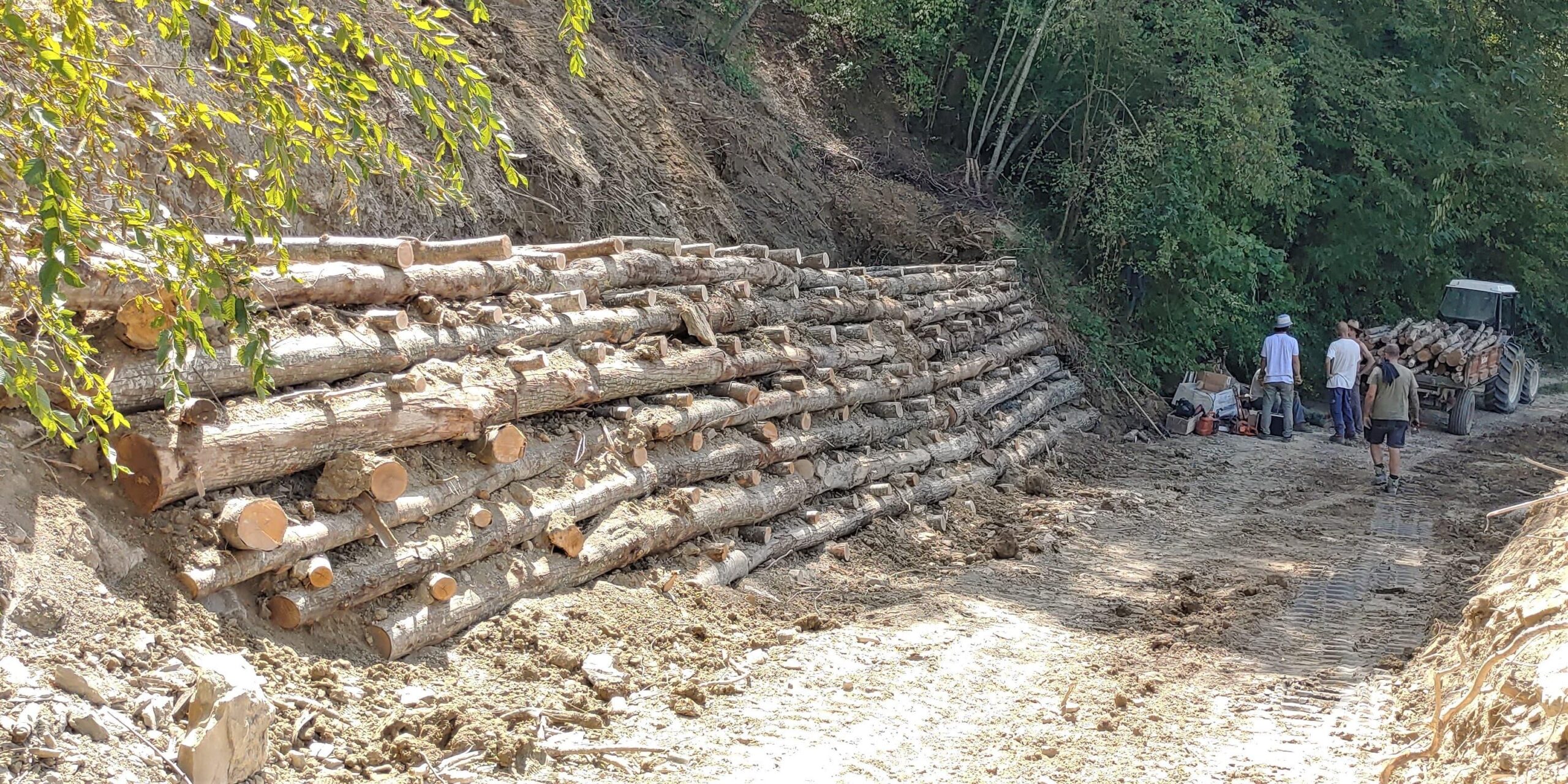 visione d’insieme della franaaccumulo della terra a valle della stradasbancamanto della basesbancamanto completato e terra da riutilizzare per successivo riempimentotrasporto pali