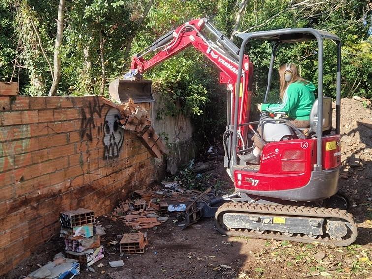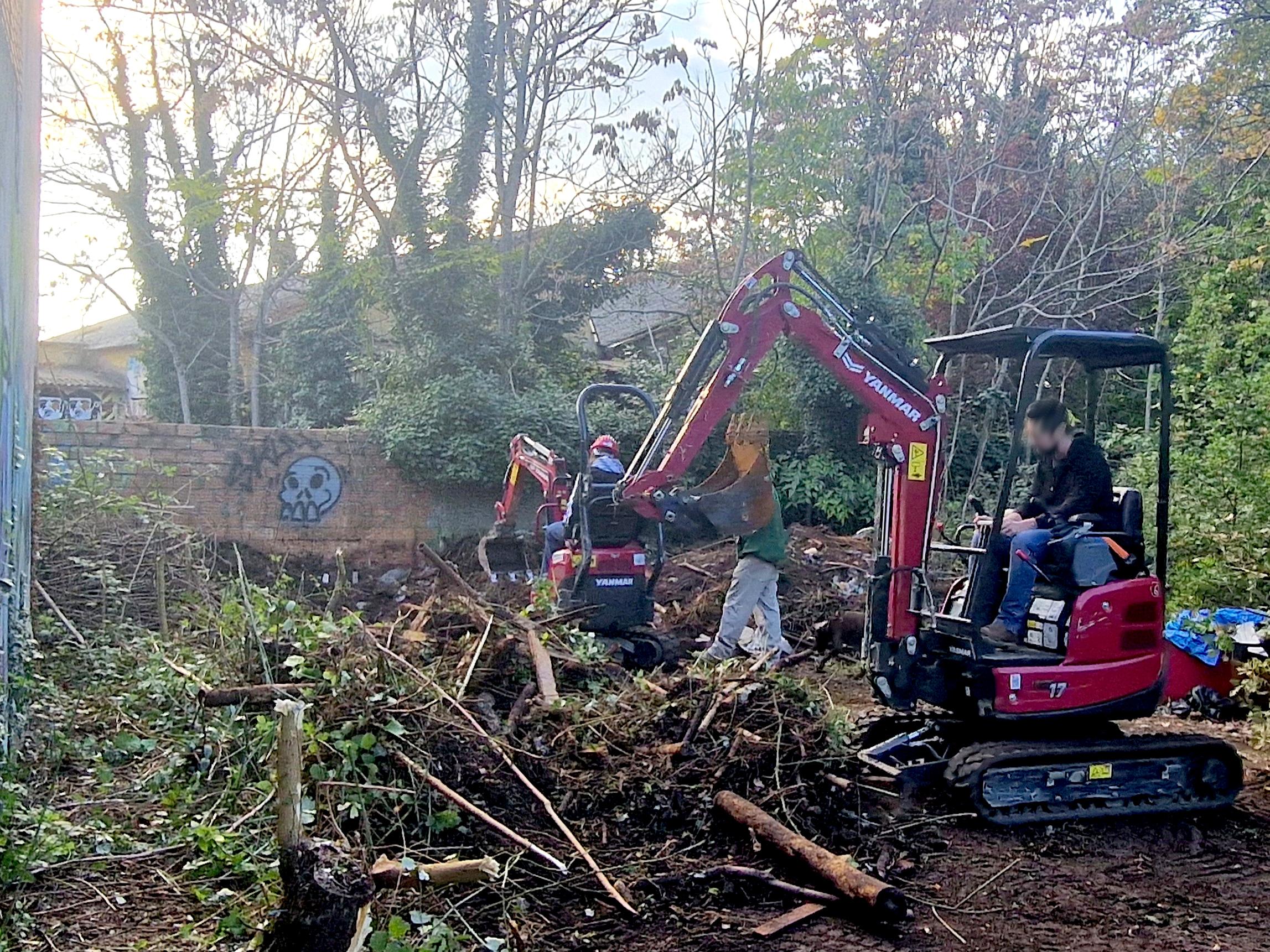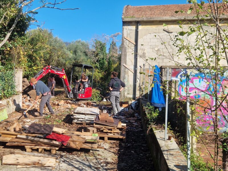 L’attività di pulizia, disboscamento, abbattimento muri e rimozione macerie è stata l’occasione per provare insieme nuove attrezzature (escavatori e altri attrezzi manuali) e per un lavoro conviviale che simula le situazioni in cui operare durante le emergenze.