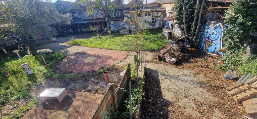 Insieme all’utilizzo sociale dei vecchi spazi industriali, il collettivo che autogestisce questo luogo cerca costantemente di strappare pezzi di verde al dilagante cemento che imperversa in tutto il quartiere.
